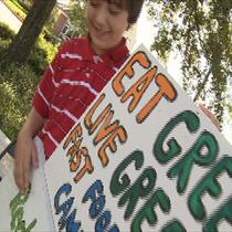 "Eat Green. Live Green.", with his
